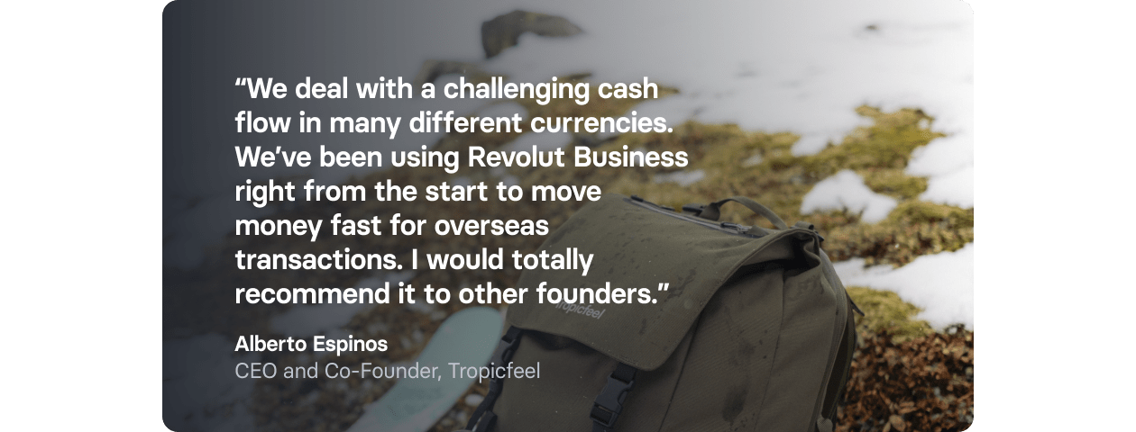That’s right, Tropicfeel has been using Revolut Business to make speedy global payments to suppliers since day one. Espinos saw the potential in using a fintech that offered scalability and flexibility that traditional banks don’t.